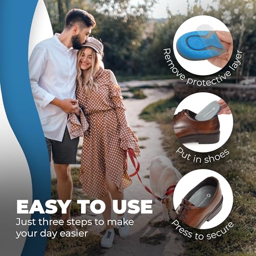 Brand: BloomLabColor: 1 Pair BlueProduct Benefits: Foot PainUse for: FootMaterial: Gel🟢 IMPORTANT USAGE INFORMATION: Initial use of our heel cups might cause minor discomfort in the heel area. This is typical and should subside within a few hours as your feet adjust. Continued use will lead to comfort and relief from leg pain and fatigueENHANCED SHOCK ABSORPTION (PATENT PENDING) – Featuring a softer, more flexible material, these improved heel inserts provide double the impact absorption, effectively reducing stress on joints and musclesSTAY SECURE, FEEL FREE - Upgraded non-slip base adheres twice as firmly to shoe soles while eliminating stickiness to the foot, ensuring comfort and stability throughout the dayALL-DAY COMFORT FOR EVERY STEP - Unisex design offers enhanced arch and heel support, making these cushions perfect for running, walking, or standing in various shoe typesSOFT & FLEXIBLE SILICONE GEL - Crafted from ultra-smooth silicone gel, these inserts combine durability and comfort, offering an ideal alternative to bulky orthotic insoles or custom heel supportsSATISFACTION GUARANTEED - We strive to provide the best experience! Please do not return used products to Amazon warehouses. Contact us directly for a quick resolution to any issues. Your satisfaction is our priority Perfect for everyday use. first-class materials and excellent craftsmanship ensure long-lasting durability.