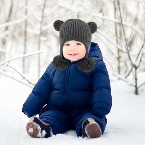 Baby Winter Hat Cute Bear Earflap Beanie cozy Fleece Lining Knit Cap for Toddler Boys Girls Age 0-3