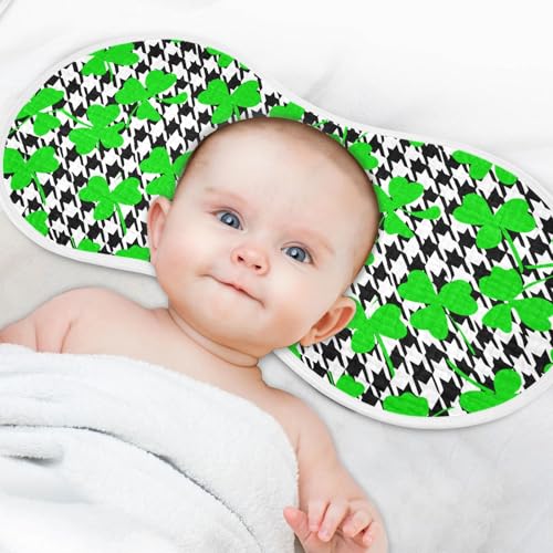 Houndstooth Clover Leaves Baby Burp Cloths Baby Bibs Burp Clothes Cotton Burping Cloths for Babies Burp Cloth Curved Absorbent Washcloths for Newborn Baby Boy Girl Essentials,2 Pack