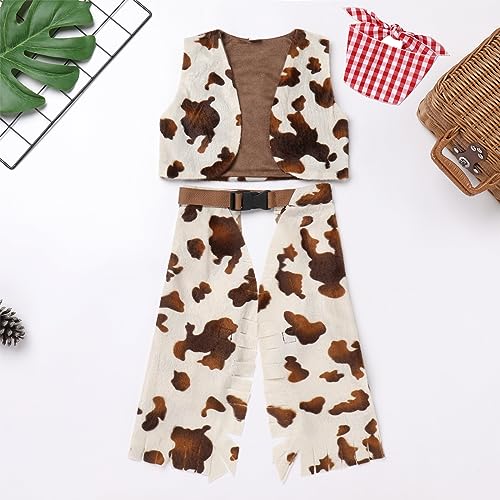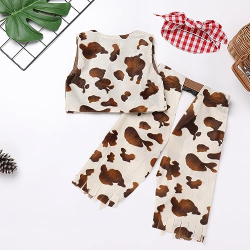 Fabric type: Faux FurCare instructions: Hand Wash OnlyOrigin: ImportedBaby Cowboy First Birthday Outfit - Celebrate the birthday of your little cowboy with this western cowboy Outfit! The infant cowboy 3 piece set combination of faux fur cow print western style vest, medium waist cow print crotchless pants, western style plaid bandana, unique and cute, the Halloween Outfit cowboy or cowgirl outfits are designed to capture attention with their lovely and charming aesthetics, bringing out the essence of the western style.Cowboy Outfit for Kids: Newborn infant baby boys girls halloween Outfit cowboy cowgirl western themed my first birthday outfits are crafted from high-quality fabric, offering a soft, elastic, and comfortable feel. The material is carefully chosen to ensure it doesn't irritate the tender skin of your kids.Charming Design: Cute halloween Outfit for baby boys, faux fur cow print western style vest features an open front top, adding a touch of charm to kid's appearance. medium waist cow print crotchless pants designed with an adjustable belt at the front. The velcro closure ensures easy movements and hassle-free diaper changes. The rodeo outfits are fully covered in a cow print, emphasizing the wild temperament and spirit of freedom associated with the cowboy or cowgirl culture.Complete Cowboy Cowgirl Look: Enhancing the authenticity of the Outfit, a western style plaid bandana is included. This accessory, when tied around the neck, completes the cowboy or cowgirl appearance. By wearing the cowboy outfits, your kids can immerse themselves in imaginative play as a cowboy or cowgirl.Occasions: Newborn infant baby boy cowboy Outfit, suitable for a range of occasions, these Outfits are for Halloween events, dress-up parties, role play, theme parties, stage performances, carnivals, photo shoots, daily wear, and more. Let your kids express their creativity and enjoy the fun of becoming a cowboy or cowgirl in these versatile and stylish outfits. Perfect for everyday use. High quality materials and excellent craftsmanship ensure long-lasting durability.