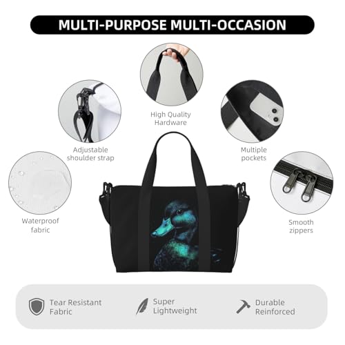 Duck green print Travel Duffel Bag, Sports Tote Gym Bag, Swim Pool Bag Large Shoulder Tote Bag for Beach Weekender