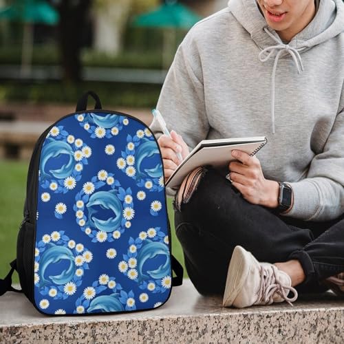 Versatile Hiking & Travel Daypack for Day Trips, Lightweight Durable Backpack with Hydration Compatibility for Men, Women & Outdoors, Dolphins Flowers Bookbag 1