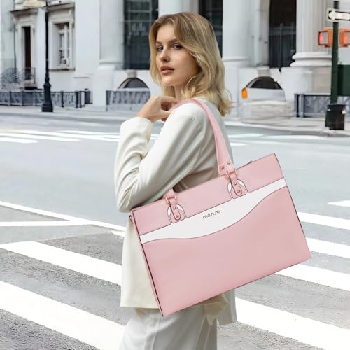 trending ! MOSISO Laptop Tote Bag for Women, 15.6 inch Work Teacher Laptop Bag, PU Leather Curved Line Computer Briefcase, Large Capacity Handbag for Business Office, Pink