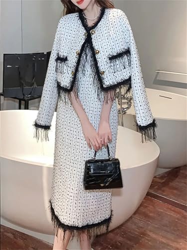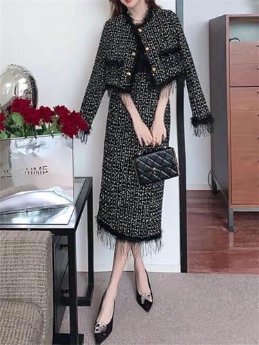 • Material: This women's tweed suit is made of high-quality fabric, tweed trim, solid color, fully lined; the skirt is knee-length, wearing it will make you more sexy and fashionable Made of tweed, high-quality fabric, lightweight, quick-drying, exceptionally supple to the touch and wear, very skin-friendly