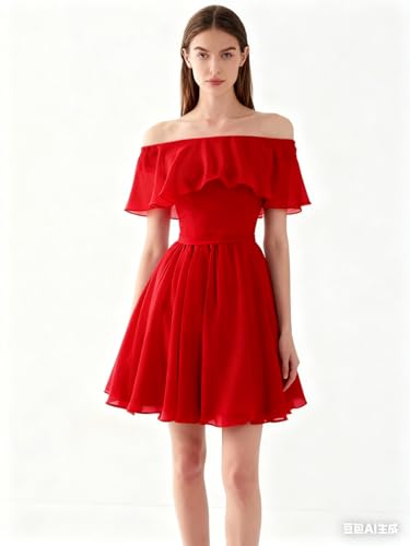 trending ! YUAOHUANG Off Shoulder Homecoming Dresses Short for Women Ruffle Flowy Chiffon A Line Mini Homecoming Dress for Teens 2025
