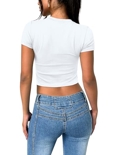 • Y2K Design: This top features a cute, slim-fitted, and casual style with a crew neck and short sleeves. It comes in both cropped and regular styles, giving you the option to wear it as a regular top or fold it up for a trendy crop top look. Whether you're dressing up for a night out or going for a casual look, this top is outstanding for any occasion.