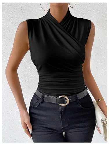 Why Choose SweatyRocks Women's Ruched Wrap Mock Neck Tank Tops Casual Sleeveless Solid Slim Fit Tank Top?