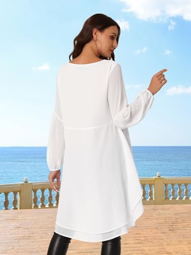 Seta T Women's High Low Tops Lantern Long Sleeve Round Neck Dressy Casual Chiffon Asymmetrical Tops Blouse 6