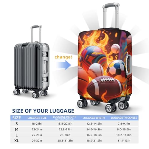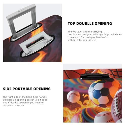 Zipper Closure Luggage Suitcase Protector Fits 18-32 inch Luggages, 3D Printed Fire Ball Soccer Basketball Baseball Football Sport Waterproof Elasticity Travel Luggage Suitcase Cover Baggage Protector