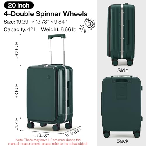 mixi Carry On Luggage with Cup Phone Holder and Charger Hard Shell Suitcases with Spinner Wheels,20 Inch Blackish Green 5
