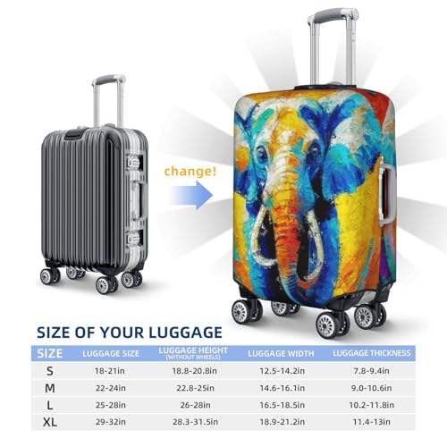 Oil Painting Elephant Print Luggage Cover Washable Elasticated Suitcase Covers TSA Approved sleek Dust and Scratch Resistant Case Protector for Kids and Adults