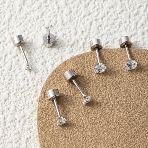 • Tiny Flat Back Earrings-- 3mm cz stud earring features a simple yet contemporary design, and flatback makes it more secure and pleasant to wear, without stabbing your neck or squishing your earlobes, You can comfortably sleep, working, play with these nap earrings!!!