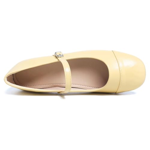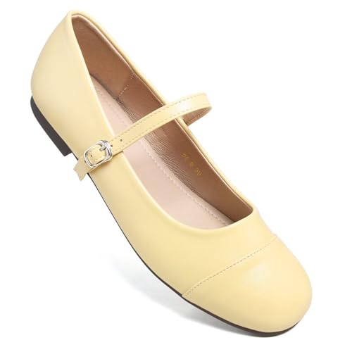 Hee grand Women's tender Leather Mary Janes Shoes Retro Dress Shoes Comfort Round Toe Ballet Flats Casual Portable Shoes