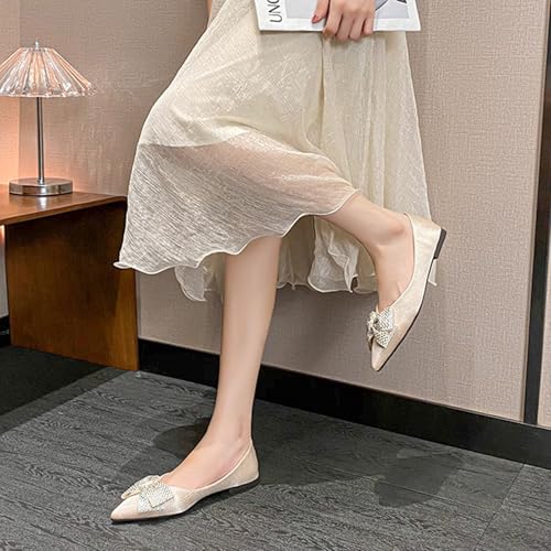 Women's Rhinestone Bow-Knot Ballet Flats Fashion Pointed Toe Slip-On Soft Bottom Low Block Heel Dress Shoes Lightweight Non-Slip Mom Nurse Walking Shoes 5