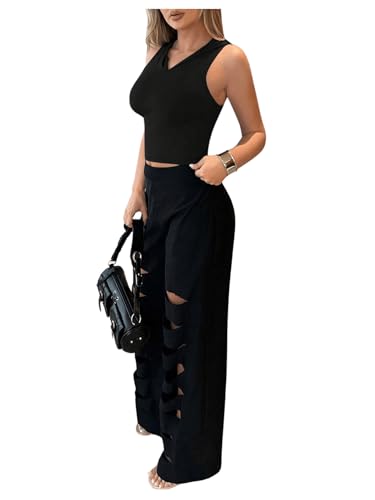 trending ! GORGLITTER Women's Hooded Crop Tank Top Sleeveless Hollow Out Workout Rave Tops