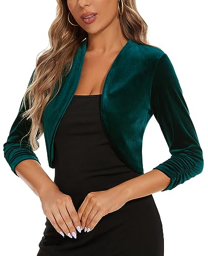 MINTLIMIT Women's Velvet Bolero Shrugs for Dresses Ruched 3/4 Sleeve Open Front Cocktail Party Cropped Cardigan