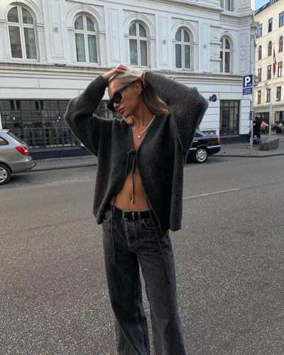 Women's Bow Tie Front Coqutte Cardigan Y2k Vintage Cyber Punk Sweaters Knitted Long Sleeve Top Fairy Grunge Clothes