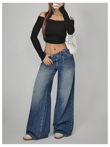 Why Choose OYOANGLE Women's Elastic Waist Jeans Casual Loose Fit Wide Leg Low-Rise Denim Baggy Jeans with Pocket?