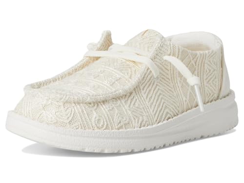 • effortless, breezy, textile makes this Hey Dude Kids Wendy Crochet Lace slip-on sneaker ready to roam. This low-top footwear is designed with easy-on elastic laces and ethylene vinyl acetate outsole for a lightweight and cushy feel.