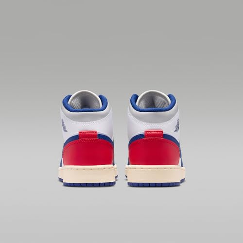 Air Jordan 1 Mid Big Kids' Shoes (White/University Red/Neutral Grey/Deep Royal Blue) 6