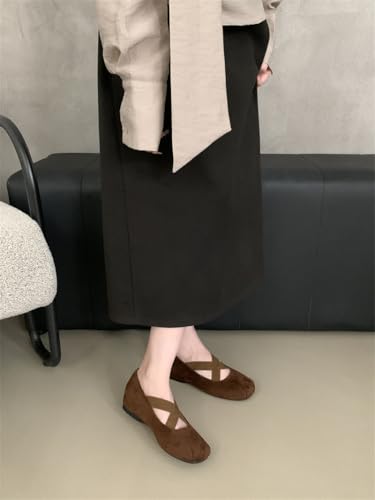 Square Toe Ballet Flats for Women with Hidden Wedge Suede Cross Strap Flats snug Walking Shoes for Daily Office Wear