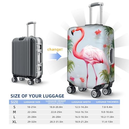 Excellent Protection: This White Flamingo Luggage Cover will protect your expensive luggage from airport handling damage which prevents scratches and dents, the Cute Suitcase Cover Protector fits snugly and securely,ensuring your suit case remains intact throughout travels4 Size Options: We offer four sizes Travel Gear Cover to fit almost any luggage,S fit 18-21 inch luggage, M fit 22-24 inch luggage, L fit 25-28 inch luggage, XL fit 29-32 inch luggage. (Please read the size chart in the picture carefully before order)Easy to Identify: The Washable Baggage Covers for adult subtly highlights its unique design and lets its color show through โ so you don't have to sacrifice style for protection. The distinctive pattern will also make it simple for you to locate and pick up your bags at the airportEasy to Install: Double-stitched all over, polyester fiber fabric, full of flexibility and elasticity, your suitcase will stay closed during the trip. There is a big opening at the top for the handle, and zippers on both sides for the side handles. The one-of-a-kind design makes it simple to install and uninstallTravel Companion: Suitable for holiday travel, the thick luggage sleeve protects your suitcase,and brilliant color and unique pattern give you a good traveling mood.It's a very gorgeous luggage protector travel luggage covers, suitable for everyone who is ready to travel Perfect for everyday use. premium materials and excellent craftsmanship ensure long-lasting durability.