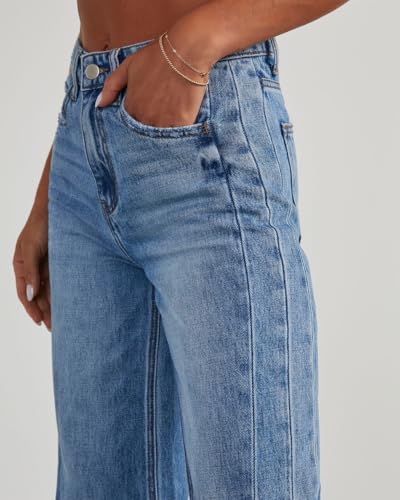 Women's Wide Leg Jeans Boyfriend High Waisted Baggy Strechy Trendy Raw Hem Denim Pants