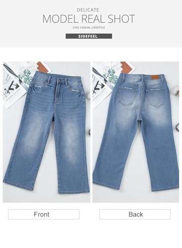 Sidefeel Women's High Waisted Capri Jeans Bell Bottoms Bootcut Summer Zimbaplatinum Denim Flare Pants
