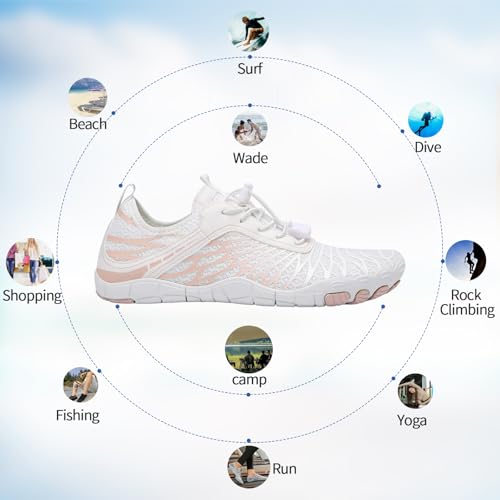 Sole material: RubberOuter material: MeshClosure type: Lace-UpWater resistance level: WaterproofHike Barefoot Womens - This women's Barefoot Shoes soft and light, elastic band closed design, easy to put on and take off. This essential boot can take you anywhere you want to go. Our hike barefoot minimalist shoe gives your feet a true barefoot feel with stretch, which means you can keep relaxed at all times.So You can enjoy the gorgeous outdoor while keeping you warm and fashion. Many colors and sizes to choose from!High-quality Material - The flexible synthetic mesh upper and ventilated sole make our barefoot shoes breathable and will keep your feet dry, ensuring a super cozy wearing experience. With an ultra-thin sole, you can feel the ground like never before.Anti-Skid Sole - Women's hike have super wear-resistant polyurethane, which is non-slip and flexible, making you feel comfortable to wear and walk for a long time. The non-slip rubber sole increases friction and grip of the water shoes, which will effectively prevent accidental slipping. Also, it is durable enough for long time wearing. Perfect for outdoor activities.Wide Toe Box - Compared to the traditional trail running shoes, this women's barefoot shoe has a wider toe box design, which allows your toes to move and spread freely, promoting foot strength and flexibility. And this barefoot shoes has upgrade elastic drawstring allows you to quickly adjust the tightness of shoes and avoid the annoyance of tying your shoes.Widely Application - Our barefoot shoes can be used for a variety of activities such as hike, walking, running, yoga, gym, water sports and so on. These warm boots are the best gift for her! Suitable for birthday, Valentine's Day, Christmas, Thanksgiving, New Year's Day and other holiday gifts! In order that you can buy the right size and color, please refer to our size table before you buying. Perfect for everyday use. premium materials and excellent craftsmanship ensure long-lasting durability.