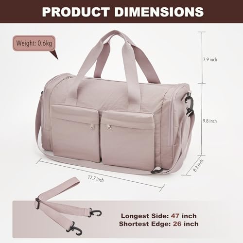 Travel Duffle Bag, Gym Bag for Women with Shoes Compartment, Weekender Overnight Duffel Bag with Wet Pocket for Traveling, Sport, Vacation (Pink) 6