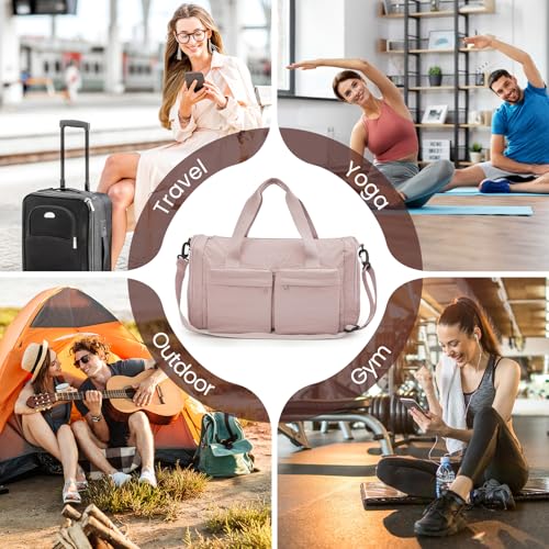 Travel Duffle Bag, Gym Bag for Women with Shoes Compartment, Weekender Overnight Duffel Bag with Wet Pocket for Traveling, Sport, Vacation (Pink) 5