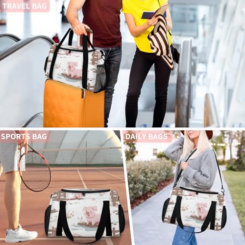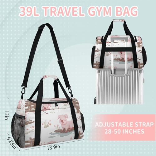 Pig Fence Flowers Flowers Travel Duffel Bag Weekender Overnight Bags for Women Men Foldable Waterproof Tote Bag with Trolley Sleeve