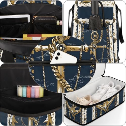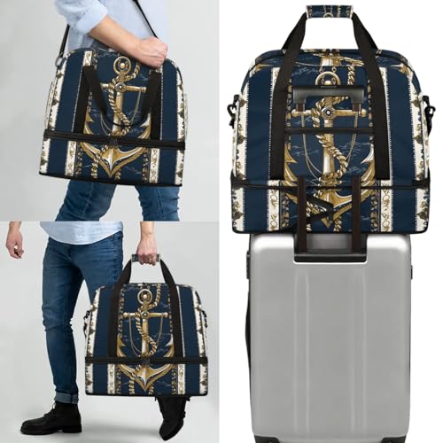Large Weekender Overnight Bags Ocean Gold Anchor Travel Duffel Bag for Women Men Gym Bag With Shoe Compartment Foldie Travel Tote Bag Carry On Personal Item Bag for Travel Gym Sports 4