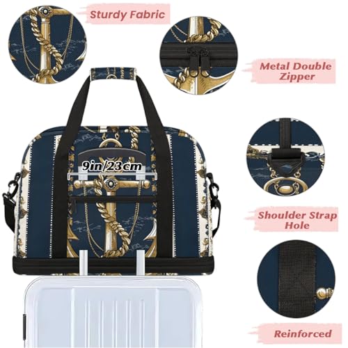 Large Weekender Overnight Bags Ocean Gold Anchor Travel Duffel Bag for Women Men Gym Bag With Shoe Compartment Foldie Travel Tote Bag Carry On Personal Item Bag for Travel Gym Sports 7
