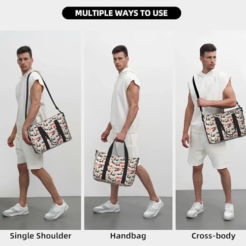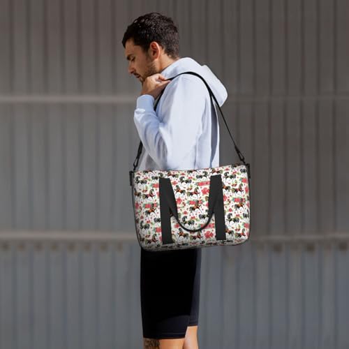 • Travel Bags for Women Men: This Cartoon Cool Horse Black Flower sports fitness bag has a current appearance and perfect for various activities . It can be used not only as a men's sprot gym bag and travel holdall bag, but also as a women's handbag, Overnight bag, and business travel bag