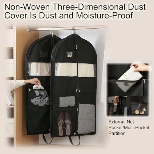 • Size Options: These garment bags are available in sizes: 43x4x24in, 51x4x24in, 60x4x24in, can be used to classify and store seasonal clothing, valuable clothing, and daily clothing, making your wardrobe tidier and easily solving the problem of clothing storage