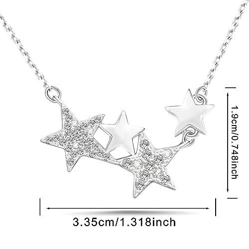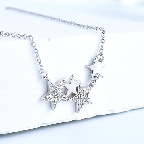 KITEENAL Star Necklace for Girls Women - Sterling Silver Adjustable Star-Shaped Pendant Necklace Cubic Zirconia Chain Hypoallergenic Minimalist Stars Charm Necklace for Teens Daughter Granddaughter