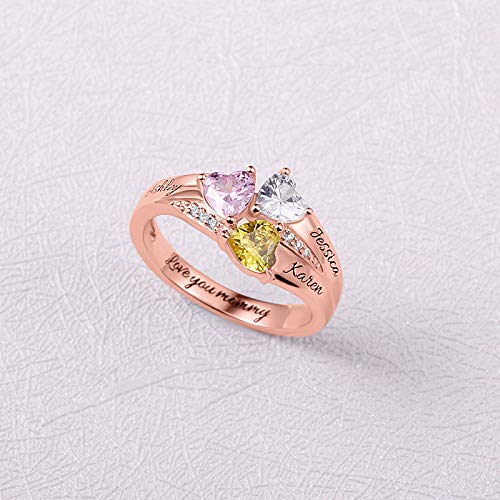 AILIN Custom Heart Birthstone Rings 925 Sterling Silver/Brass Personalized 3 Kids Couple Names Mothers Day Birthday Gifts For Women Mom Grandma