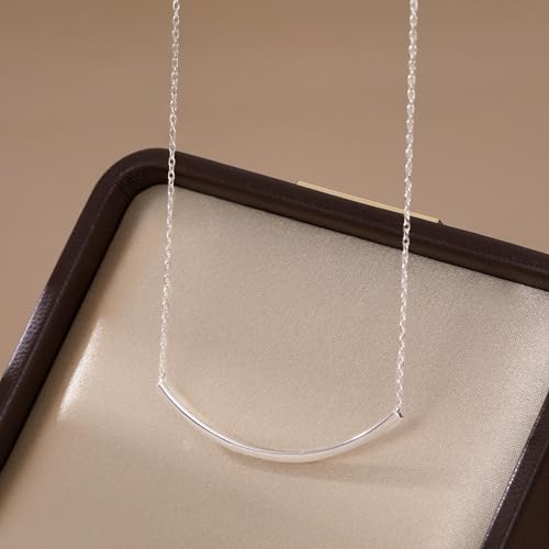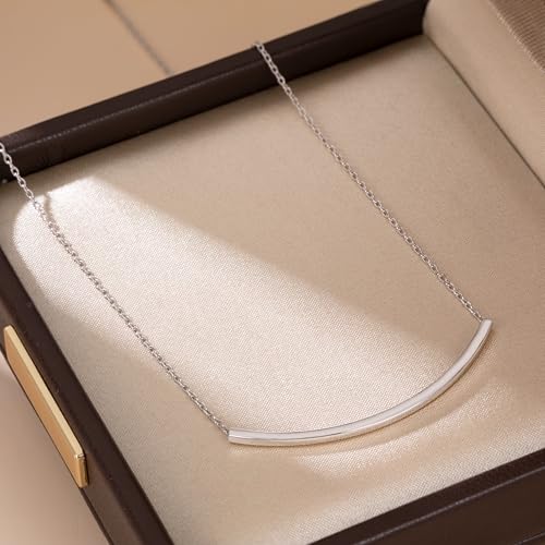SLUYNZ Solid 925 Sterling Silver Minimalist Bar Choker Necklace for Women Teens Curved Tube Bar Pendant Necklace
