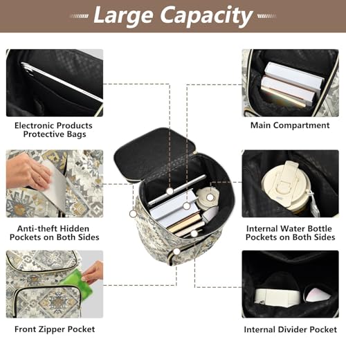 KLL Classical Boho Brown Backpack for Women sleek Multipurpose College Bookbag Daypack for Shopping Sports Travel