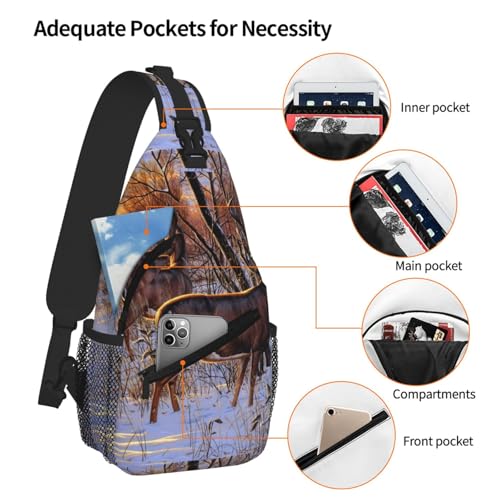 Cross Chest Bag Diagonally-Deers Picture Print resilient Hiking Daypacks With Large Capacity For Women Men