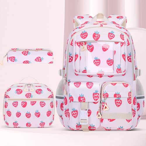 Backpack for Girls, 3 Pcs Set Kids schol Bookbag with Lunch Bag & Pencil Pouch Cute Lightweight Backpack for Kindergarten Elementary Middle High schol stdent Girls Kids Teens