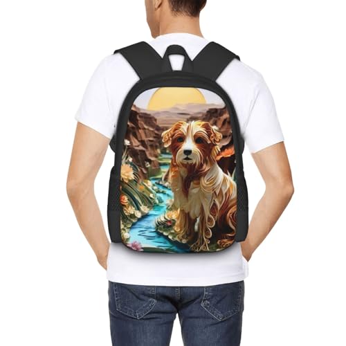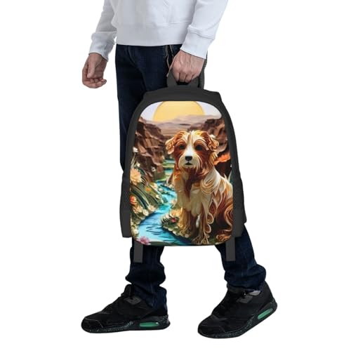 Commuter Unisex Dog River Flowers Canyon Backpack Spacious Compartments for Work Essentials Casual Outings & Trips 17 Inch 7