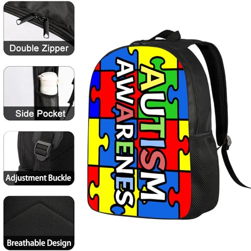 Autism Awareness Backpacks Colorful Puzzles School Bags Travel Backpacks Laptop School Bookbags Lightweight 17 inch Large Daypack Rucksack for Women Men Teens Kids 4