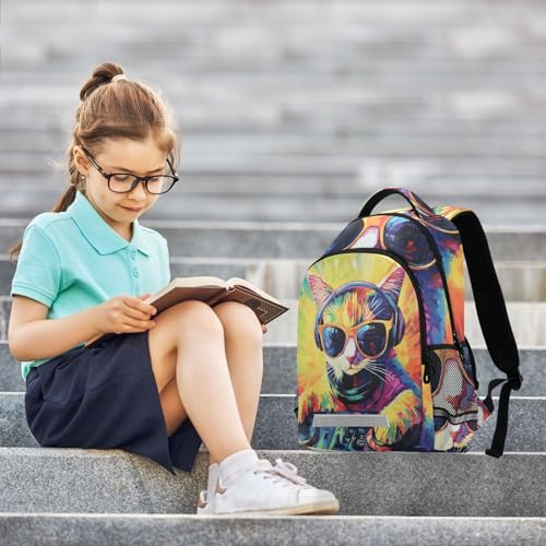 Colorful Dj Cat with Turntables Designed kids princess backpack with big books bag for elementary (prop3)