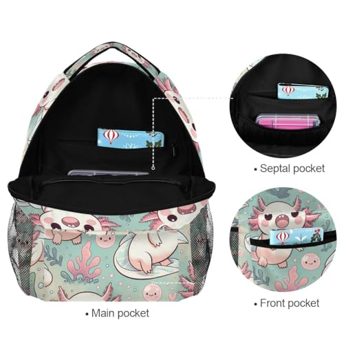 Kids Back Pack, Lightweight Travel Bookbag, Ideal for Ages 6–14, Cute Cartoon Axolotls 4