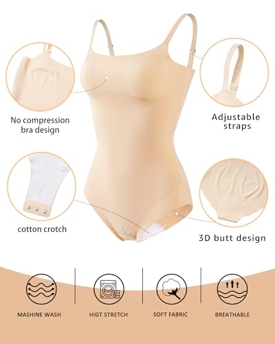 • supple and Breathable Material:The women's shapewear bodysuits is made of high-quality 78% polyamide and 22% spandex fabric, combined with cotton crotch design, soft, breathable, lightweight and skin friendly, ensuring comfort for each-day wear. Suitable for long-term wear, no pressure, and fits the body curve
