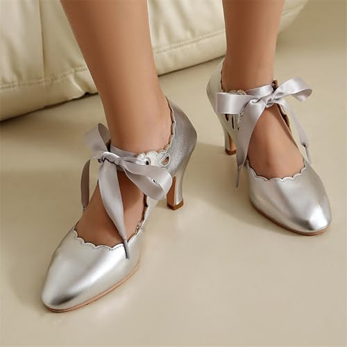 Elerhythm Women's Mary Jane Vintage Lace Up Teardrop Cut Out Close Round Toe 1920s Gatsby Heels Retro 1950s Victorian Pumps Suede Shoes 1