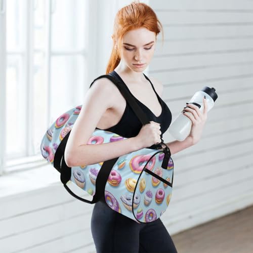 trending ! Donut Macarons Sports Duffel Bag Multi-Pocket Barrel Gym Bag with Adjustable Strap Full Print Polyester Fabric and Microfiber Leather Trim for Workout Travel and Sports