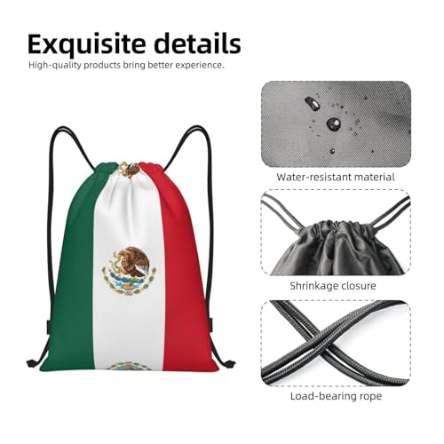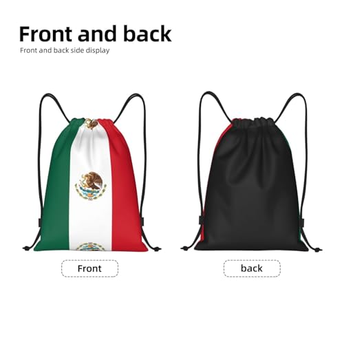 Small Vibrant Full-Print Design: These string bags feature eye-catching full-panel Flag of Mexico prints that make a bold style statement, faultless for standing out during gym sessions, yoga class, or travel adventures.Premium 210D Polyester Fabric: Crafted from high-density 210D polyester, this drawstring bag offers exceptional durability and lightweight comfort, designed to withstand daily wear and tear while remaining easy to carry.Water-Resistant Protection: The specially treated fabric provides effective water resistance, keeping your essentials safe and dry in light rain or accidental spills, ideal for gym, camping, and outdoor activities.Adjustable Shoulder Straps & Easy Closure: The versatile drawstring design allows for quick and secure opening and closing, while the adjustable straps let you customize the length by simply tying a knot for a personalized fit.Multi-Functional & Foldable: Perfectly suited as a gym backpack, yoga sack, travel carry-on, or hiking bag, this cinch sack can be folded flat for easy storage, making it great for bulk gifting or on-the-go lifestyles. Perfect for everyday use. premium materials and excellent craftsmanship ensure long-lasting durability.